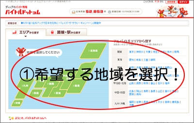 『バイトルドットコム』のトップページから、希望する地域を選択します!